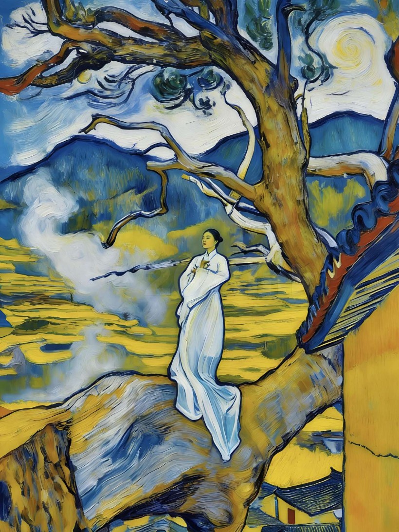 国风后印象派油画《山色有无中》