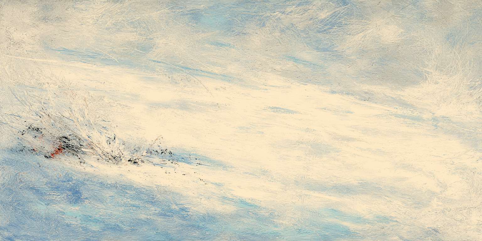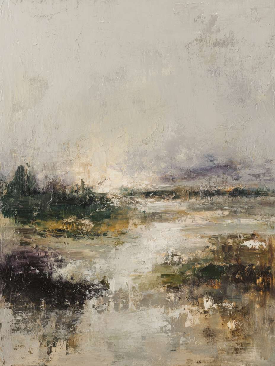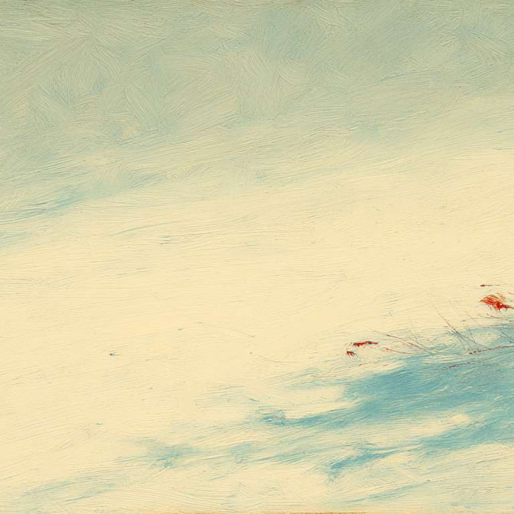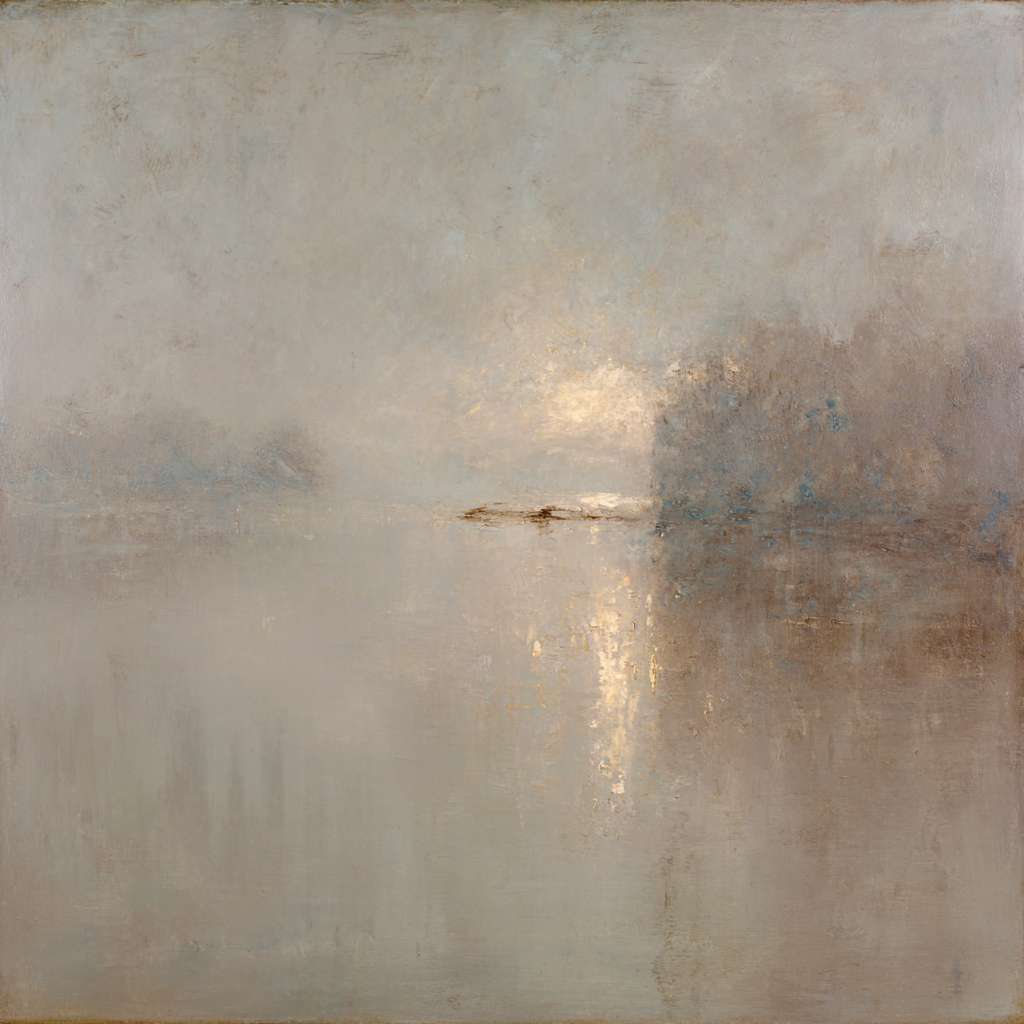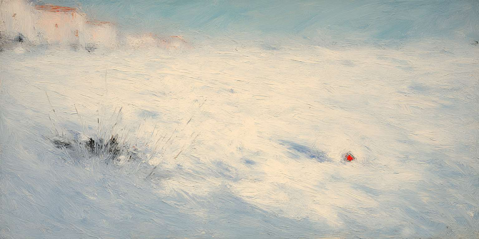 抽象油画《雪境·朱迹》 2025年9月17日 作者:weeder 淡青的绢帛向西风展开,三笔两笔便睡成了冬。是莫奈的调色盘倾侧时,漏下一勺朦胧的梦。苇草在灰白里曲着腰肢,学不会蝴蝶的轻盈。唯有你——一粒朱砂,从砚池底浮起,忽然站定。像那年渡口边的绒帽子,被篙师点进水纹里;或是冻云深处某盏灯笼,被山鬼遗忘在雪脊。我欲俯身拾取这暖意,指尖却生出新雪。原来有些印记天生便适合,望着,望着,直至天地都褪成一封未写完的信札。 上一篇古典油画《蓝野低语·灰穹絮语》下一篇 印象派油画《海隅的野菊絮语》 发表回复 取消回复您的邮箱地址不会被公开。 必填项已用 * 标注评论 * 显示名称 * 邮箱 * 网站 在此浏览器中保存我的显示名称、邮箱地址和网站地址,以便下次评论时使用。