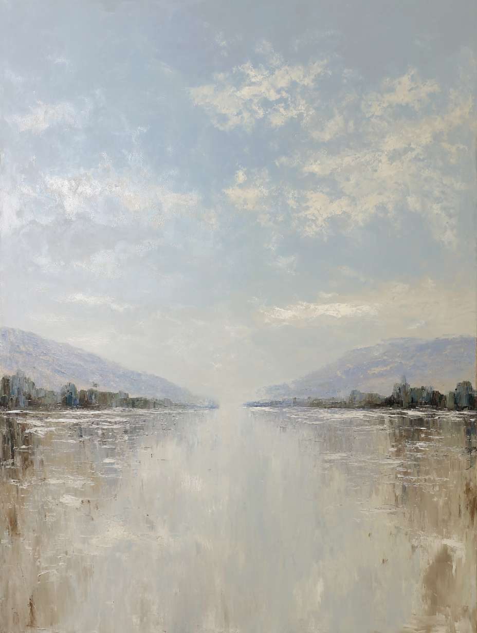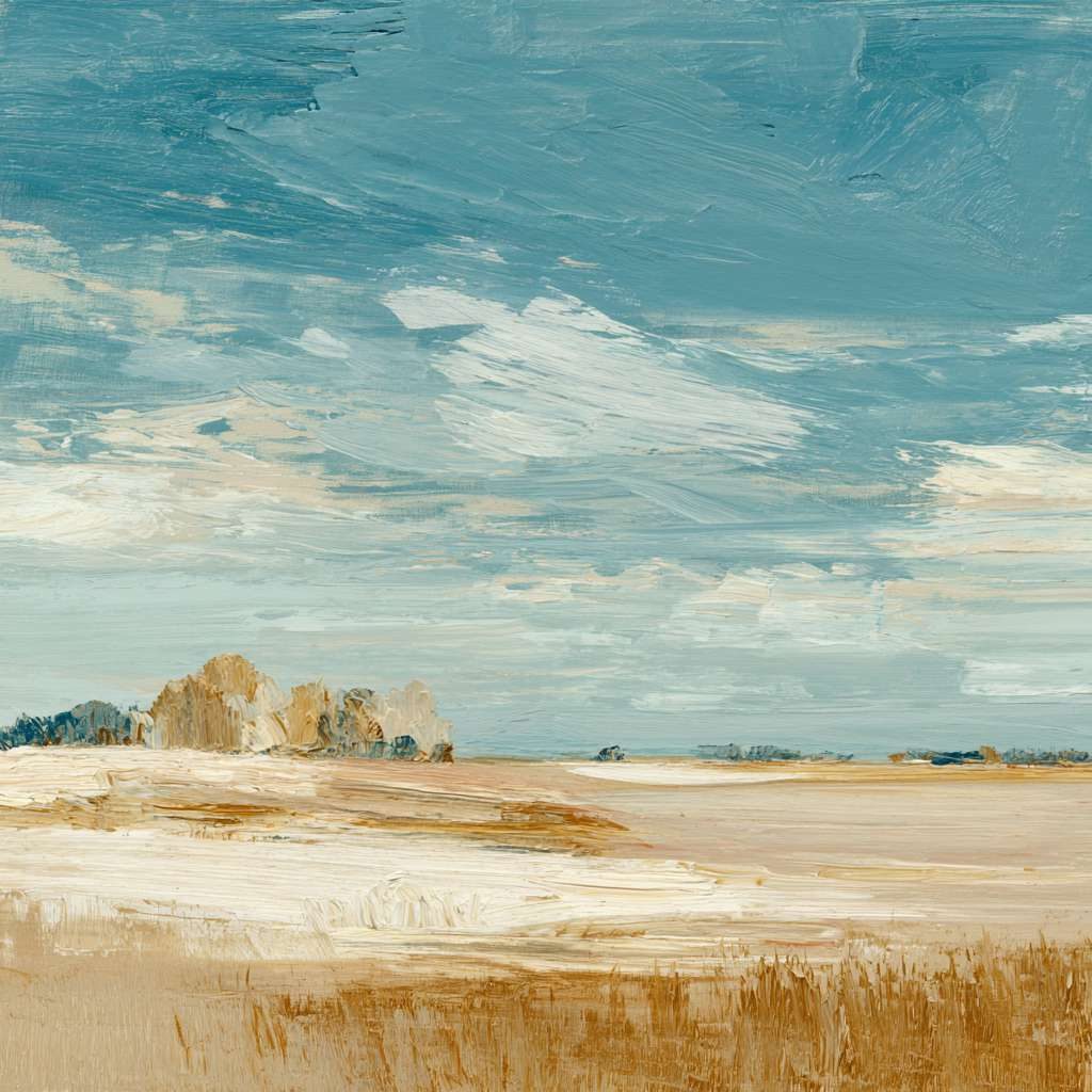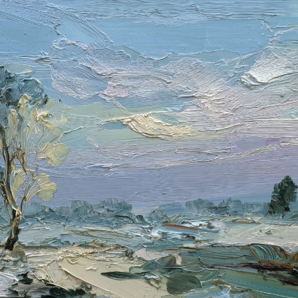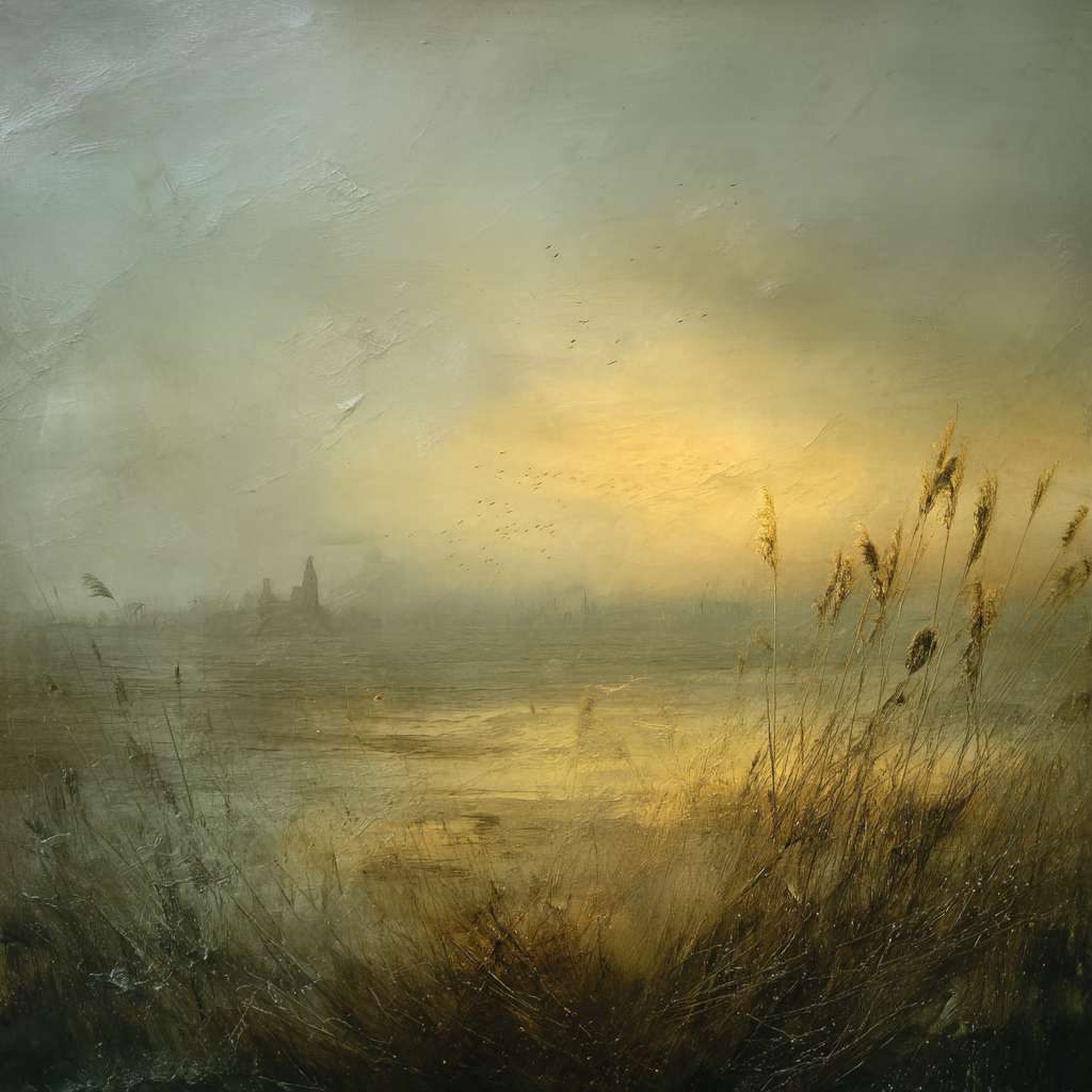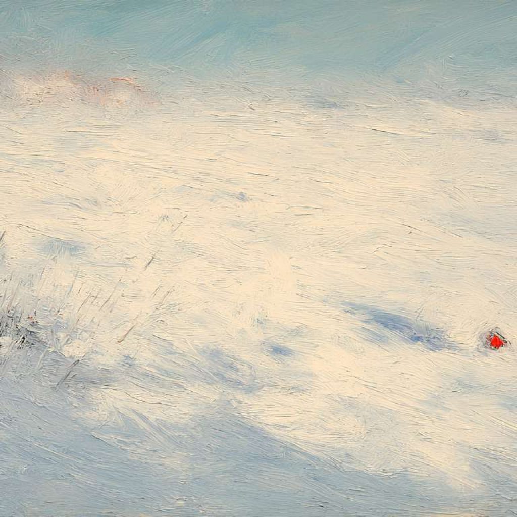 抽象油画《雪境·朱迹》 2025年9月17日 作者:weeder 淡青的绢帛向西风展开,三笔两笔便睡成了冬。是莫奈的调色盘倾侧时,漏下一勺朦胧的梦。苇草在灰白里曲着腰肢,学不会蝴蝶的轻盈。唯有你——一粒朱砂,从砚池底浮起,忽然站定。像那年渡口边的绒帽子,被篙师点进水纹里;或是冻云深处某盏灯笼,被山鬼遗忘在雪脊。我欲俯身拾取这暖意,指尖却生出新雪。原来有些印记天生便适合,望着,望着,直至天地都褪成一封未写完的信札。 上一篇古典油画《蓝野低语·灰穹絮语》下一篇 印象派油画《海隅的野菊絮语》 发表回复 取消回复您的邮箱地址不会被公开。 必填项已用 * 标注评论 * 显示名称 * 邮箱 * 网站 在此浏览器中保存我的显示名称、邮箱地址和网站地址,以便下次评论时使用。