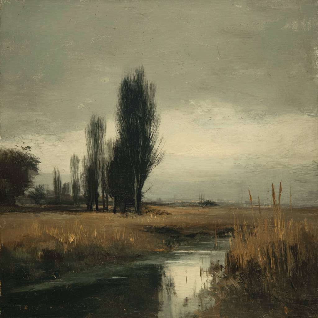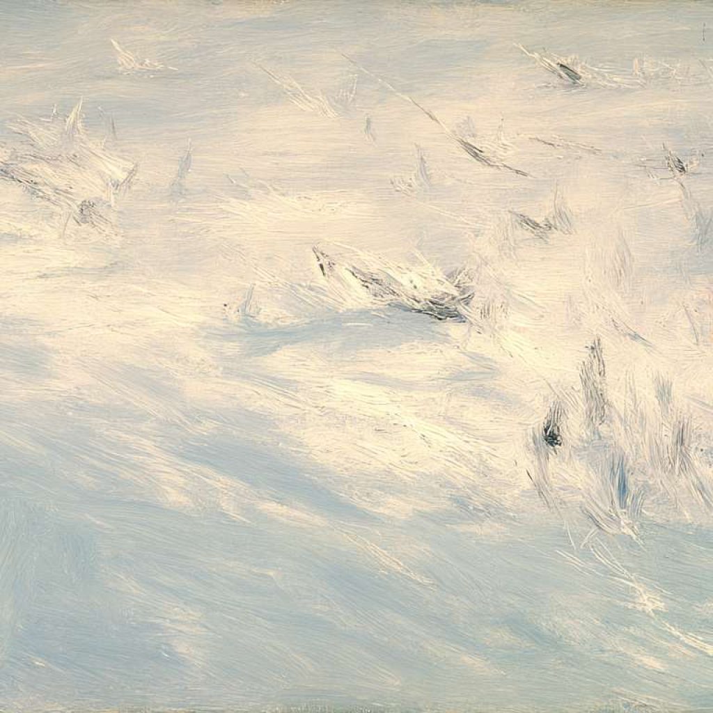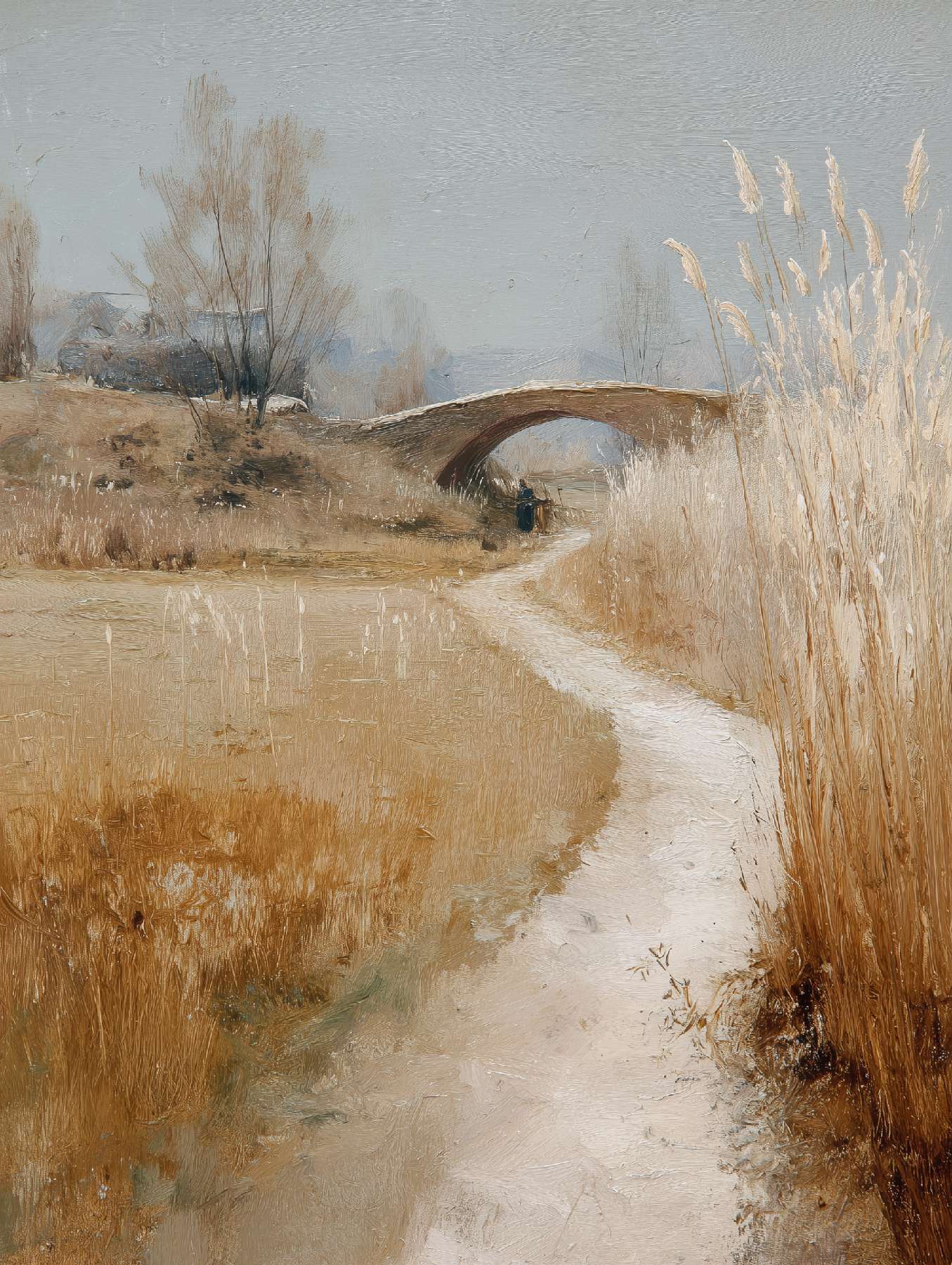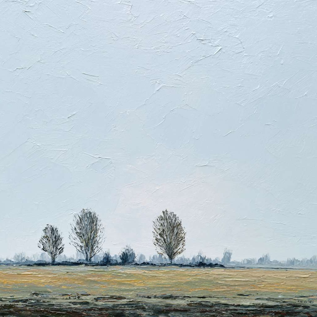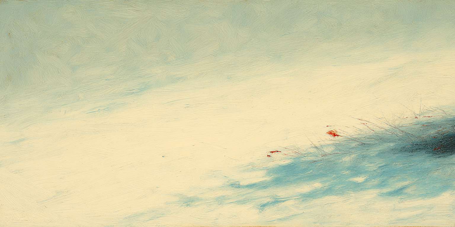 抽象油画《雪境·朱迹》 2025年9月17日 作者:weeder 淡青的绢帛向西风展开,三笔两笔便睡成了冬。是莫奈的调色盘倾侧时,漏下一勺朦胧的梦。苇草在灰白里曲着腰肢,学不会蝴蝶的轻盈。唯有你——一粒朱砂,从砚池底浮起,忽然站定。像那年渡口边的绒帽子,被篙师点进水纹里;或是冻云深处某盏灯笼,被山鬼遗忘在雪脊。我欲俯身拾取这暖意,指尖却生出新雪。原来有些印记天生便适合,望着,望着,直至天地都褪成一封未写完的信札。 上一篇古典油画《蓝野低语·灰穹絮语》下一篇 印象派油画《海隅的野菊絮语》 发表回复 取消回复您的邮箱地址不会被公开。 必填项已用 * 标注评论 * 显示名称 * 邮箱 * 网站 在此浏览器中保存我的显示名称、邮箱地址和网站地址,以便下次评论时使用。