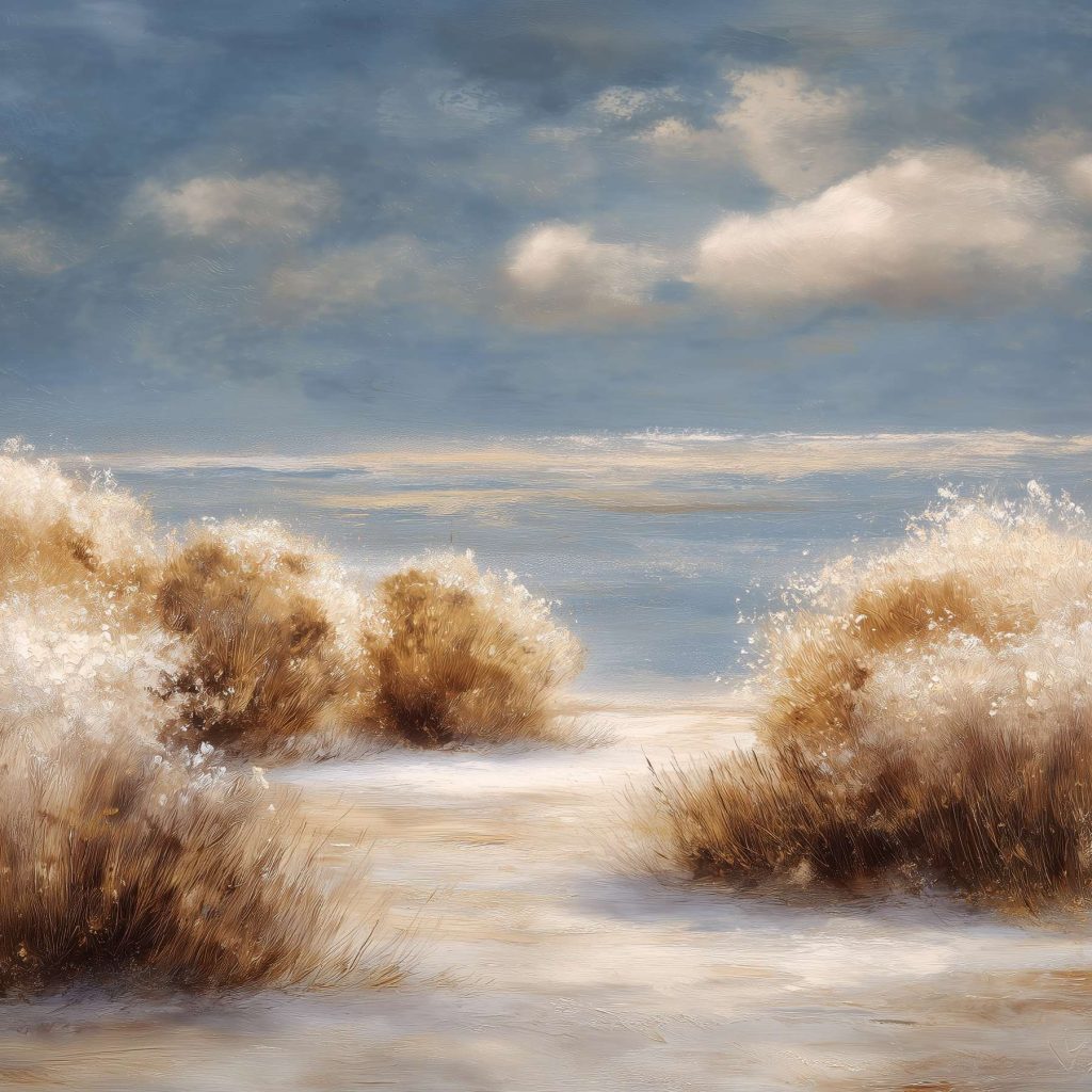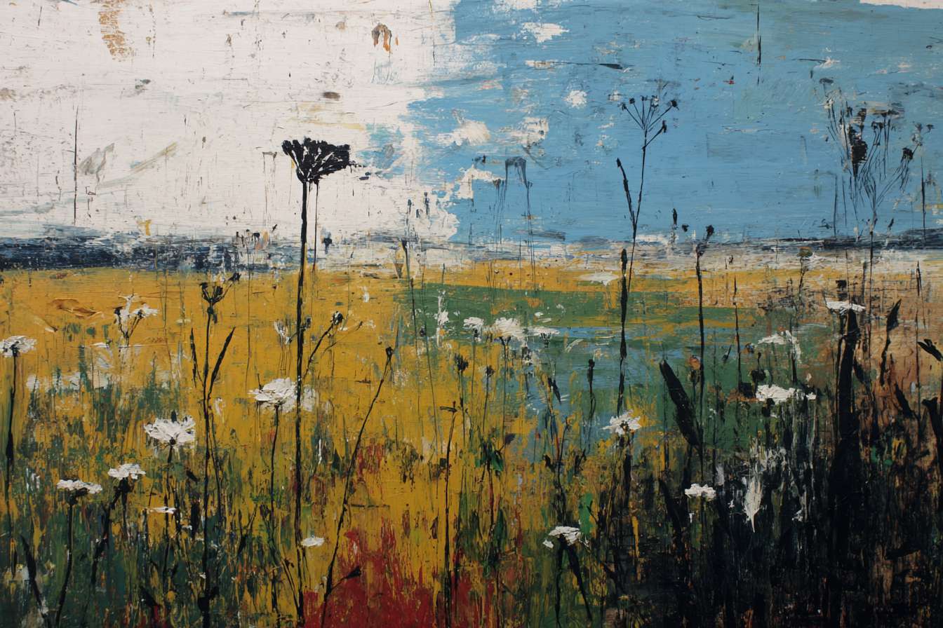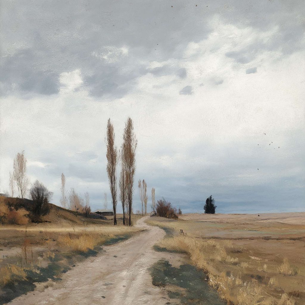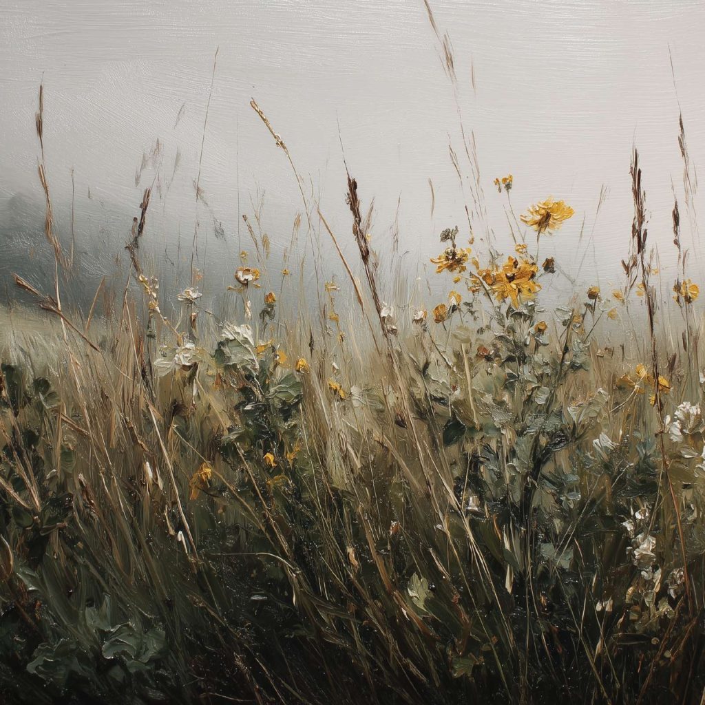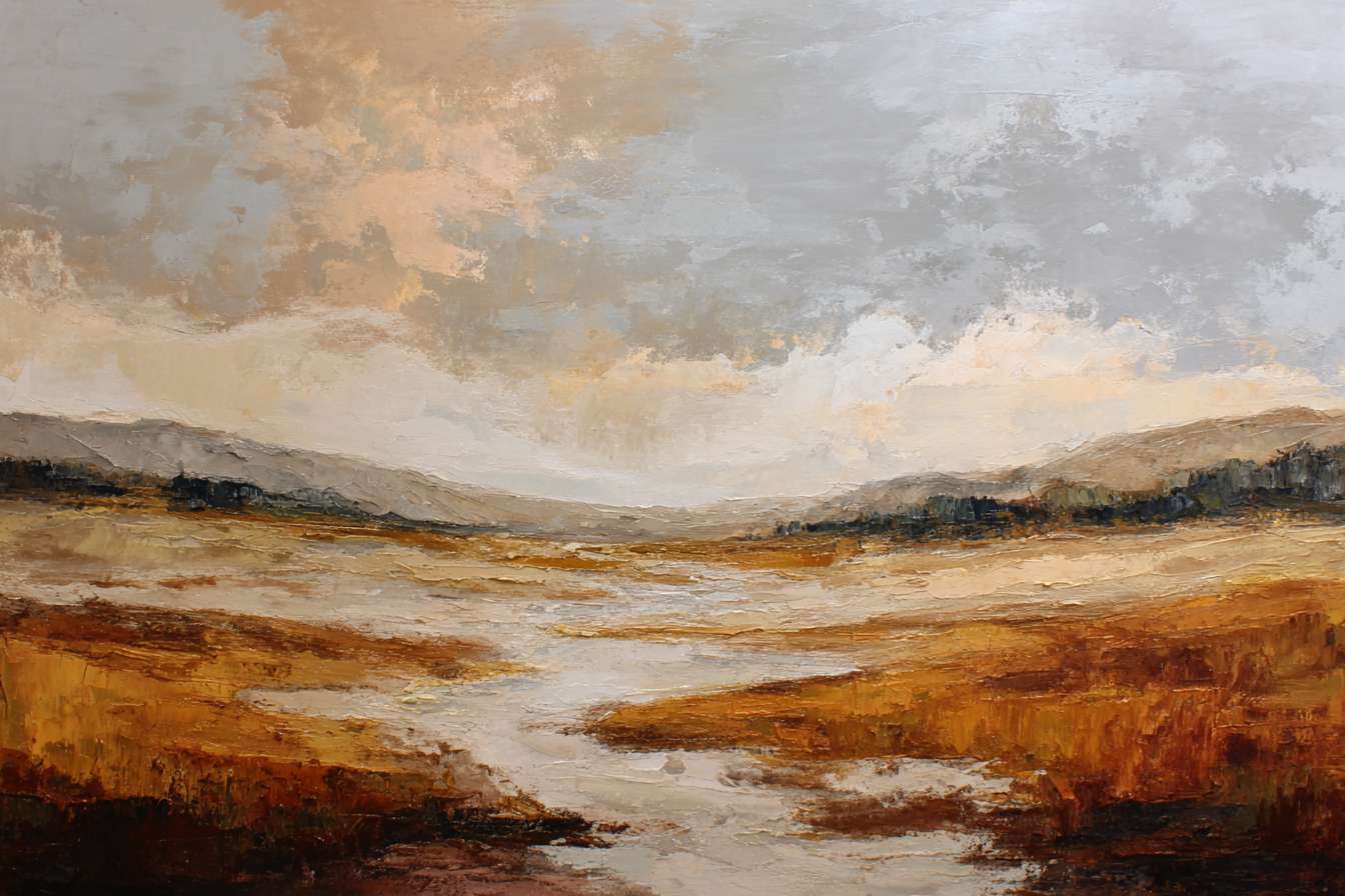 抽象油画《雪境·朱迹》 2025年9月17日 作者:weeder 淡青的绢帛向西风展开,三笔两笔便睡成了冬。是莫奈的调色盘倾侧时,漏下一勺朦胧的梦。苇草在灰白里曲着腰肢,学不会蝴蝶的轻盈。唯有你——一粒朱砂,从砚池底浮起,忽然站定。像那年渡口边的绒帽子,被篙师点进水纹里;或是冻云深处某盏灯笼,被山鬼遗忘在雪脊。我欲俯身拾取这暖意,指尖却生出新雪。原来有些印记天生便适合,望着,望着,直至天地都褪成一封未写完的信札。 上一篇古典油画《蓝野低语·灰穹絮语》下一篇 印象派油画《海隅的野菊絮语》 发表回复 取消回复您的邮箱地址不会被公开。 必填项已用 * 标注评论 * 显示名称 * 邮箱 * 网站 在此浏览器中保存我的显示名称、邮箱地址和网站地址,以便下次评论时使用。