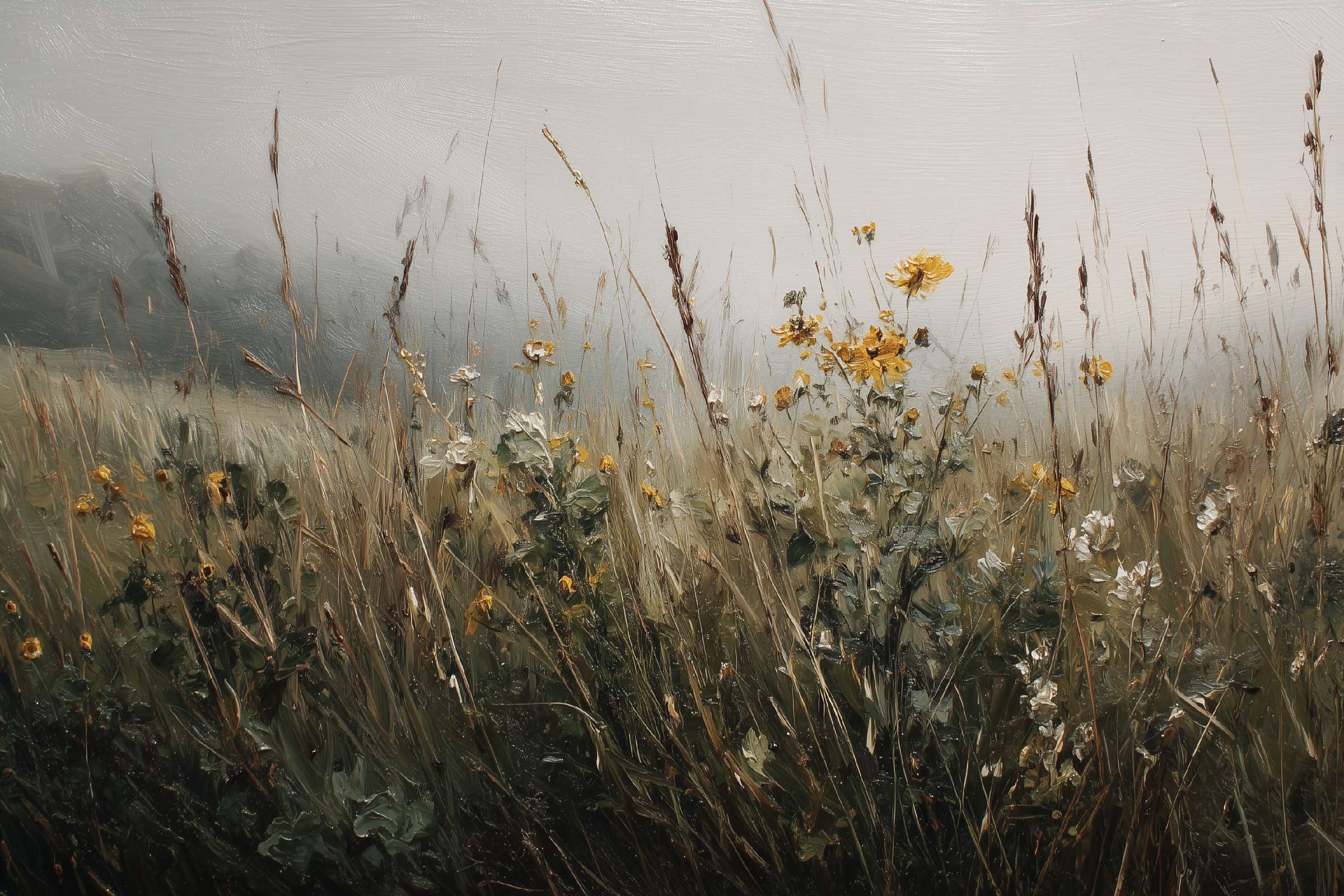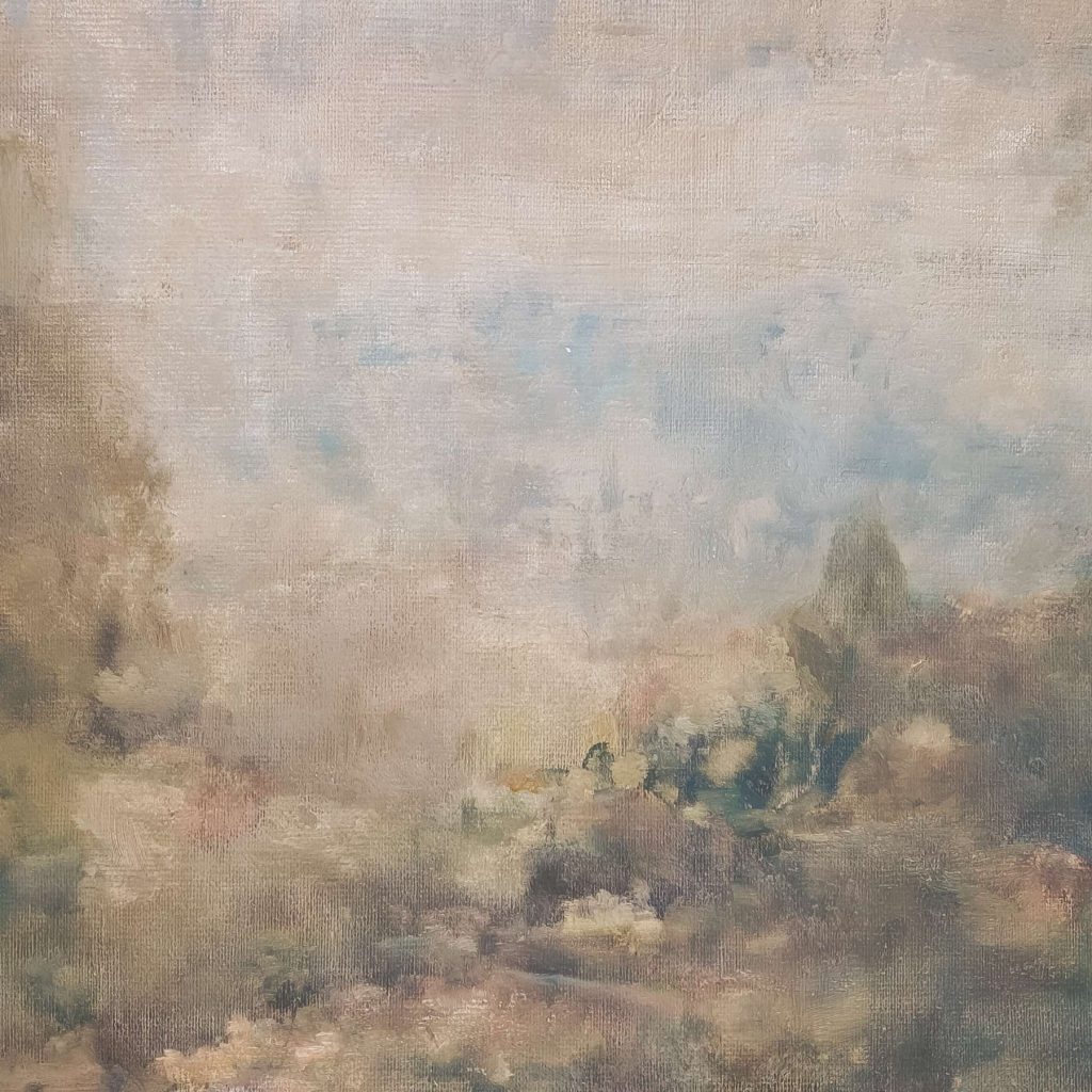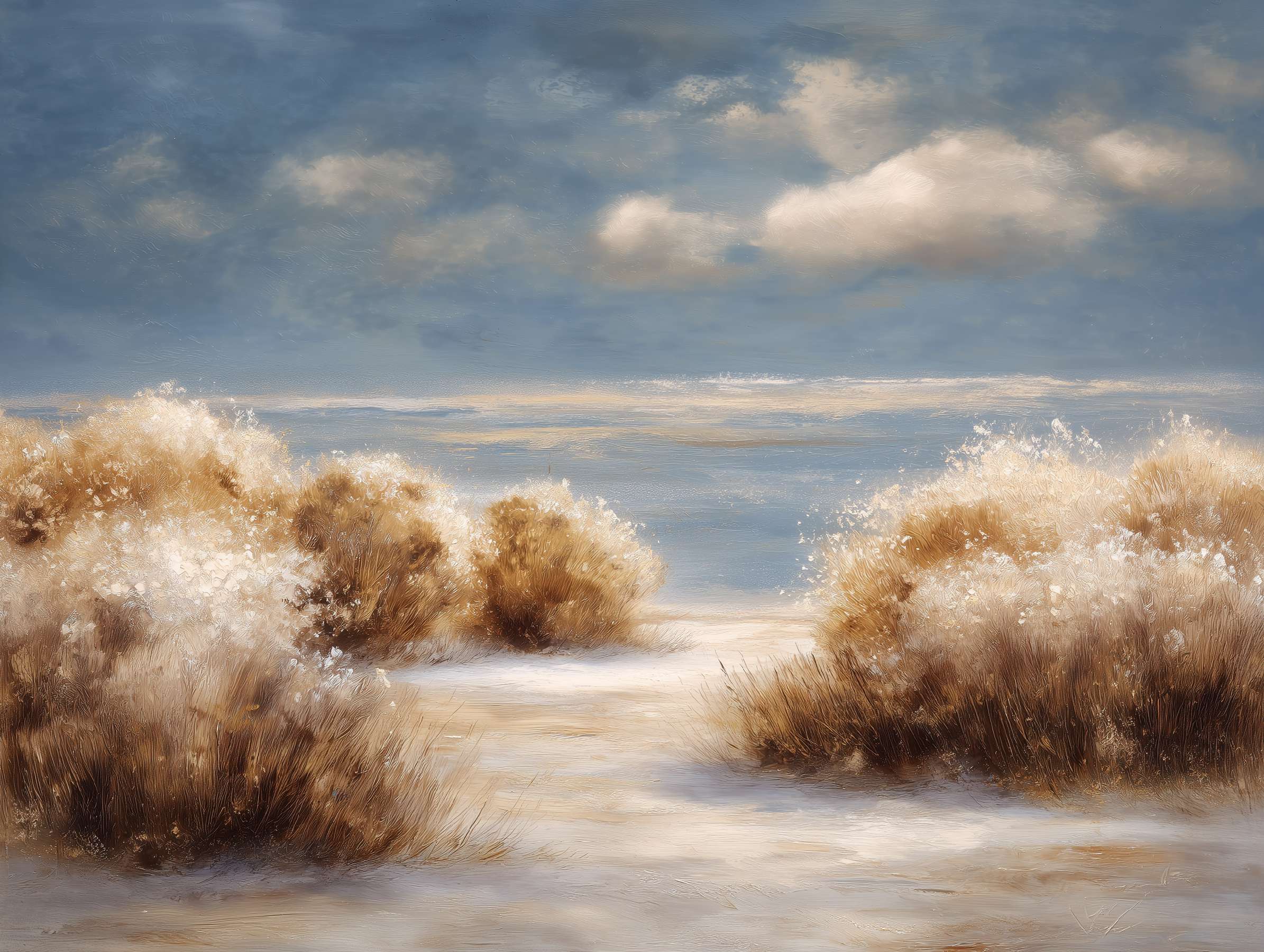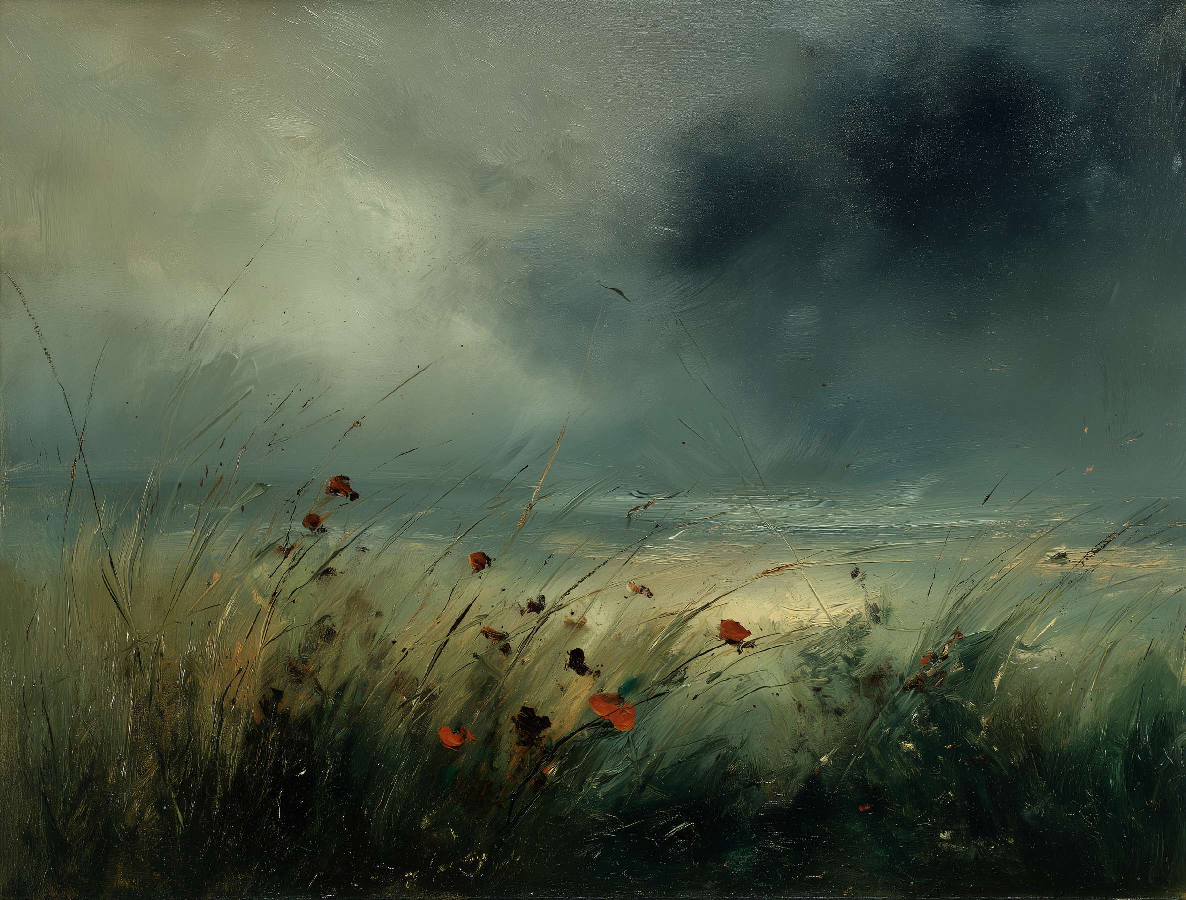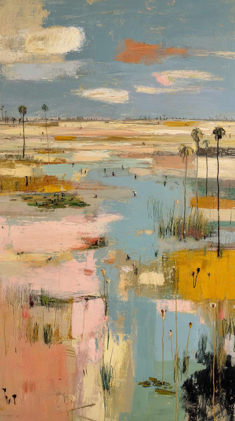 抽象油画《雪境·朱迹》 2025年9月17日 作者:weeder 淡青的绢帛向西风展开,三笔两笔便睡成了冬。是莫奈的调色盘倾侧时,漏下一勺朦胧的梦。苇草在灰白里曲着腰肢,学不会蝴蝶的轻盈。唯有你——一粒朱砂,从砚池底浮起,忽然站定。像那年渡口边的绒帽子,被篙师点进水纹里;或是冻云深处某盏灯笼,被山鬼遗忘在雪脊。我欲俯身拾取这暖意,指尖却生出新雪。原来有些印记天生便适合,望着,望着,直至天地都褪成一封未写完的信札。 上一篇古典油画《蓝野低语·灰穹絮语》下一篇 印象派油画《海隅的野菊絮语》 发表回复 取消回复您的邮箱地址不会被公开。 必填项已用 * 标注评论 * 显示名称 * 邮箱 * 网站 在此浏览器中保存我的显示名称、邮箱地址和网站地址,以便下次评论时使用。