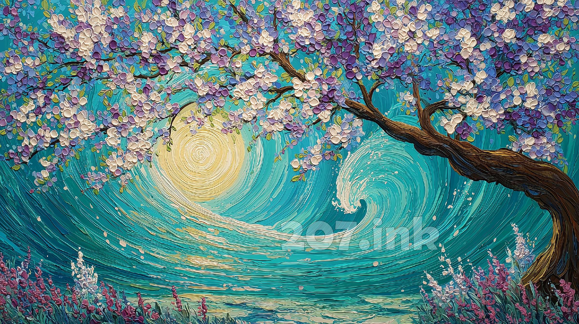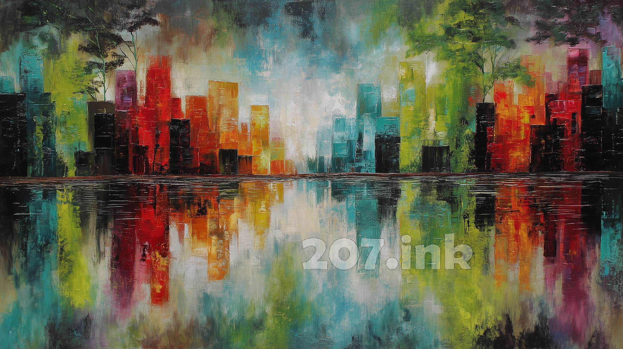 印象派厚涂油画《驻影》