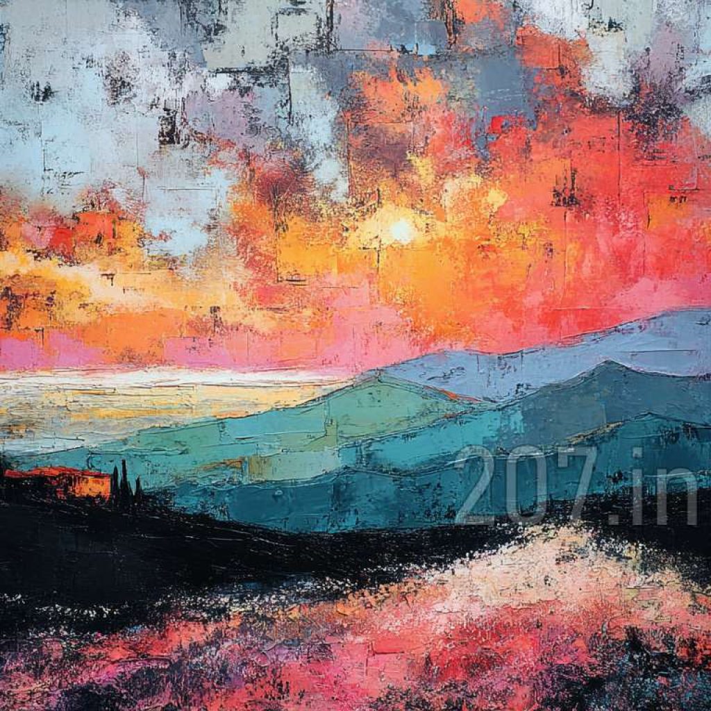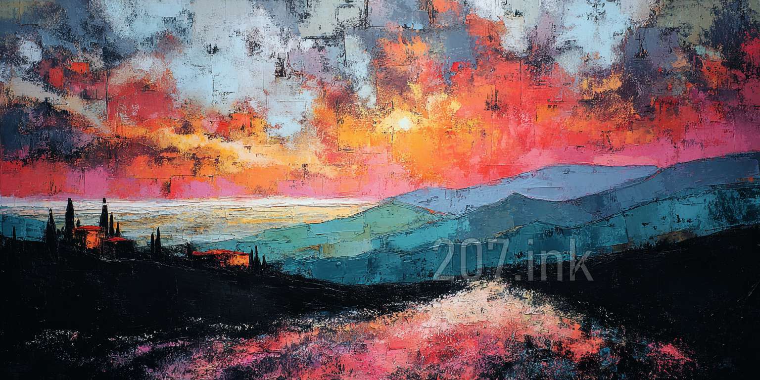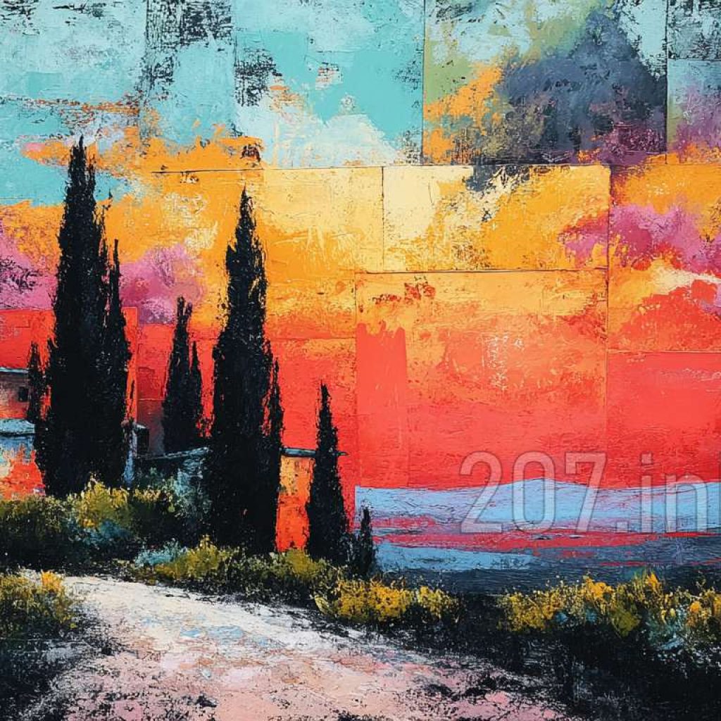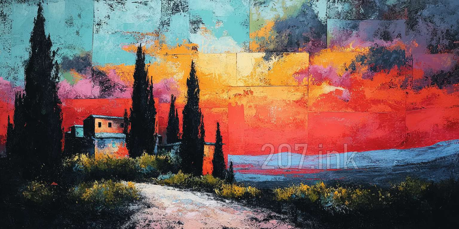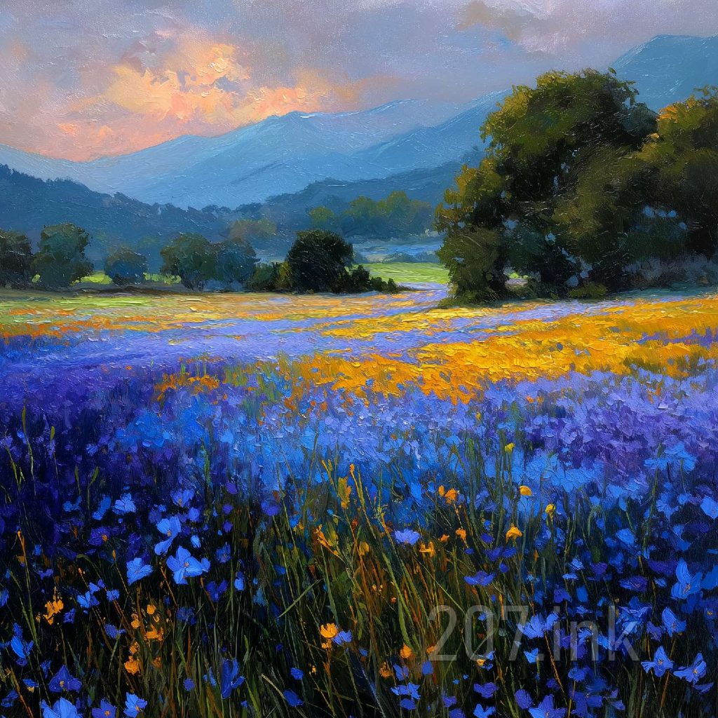 印象油画《阳光洒满的薰衣草田》