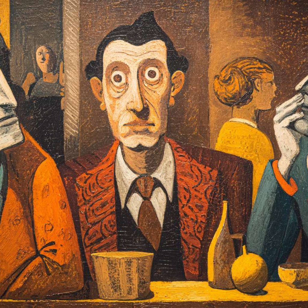 大笑在餐厅回荡:“我活着时他们说我不会写诗。等我死了,同样的诗会成为‘天才的文本实验’。所以你看,时间是最好的合作者——它总能为你的作品找到解释。”