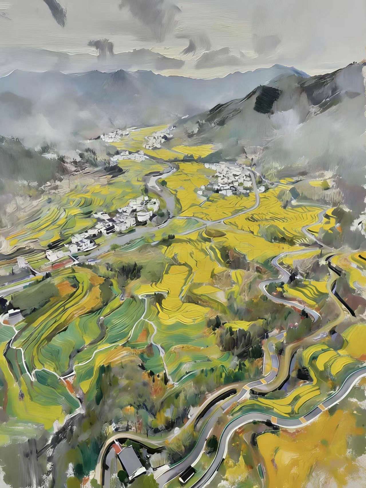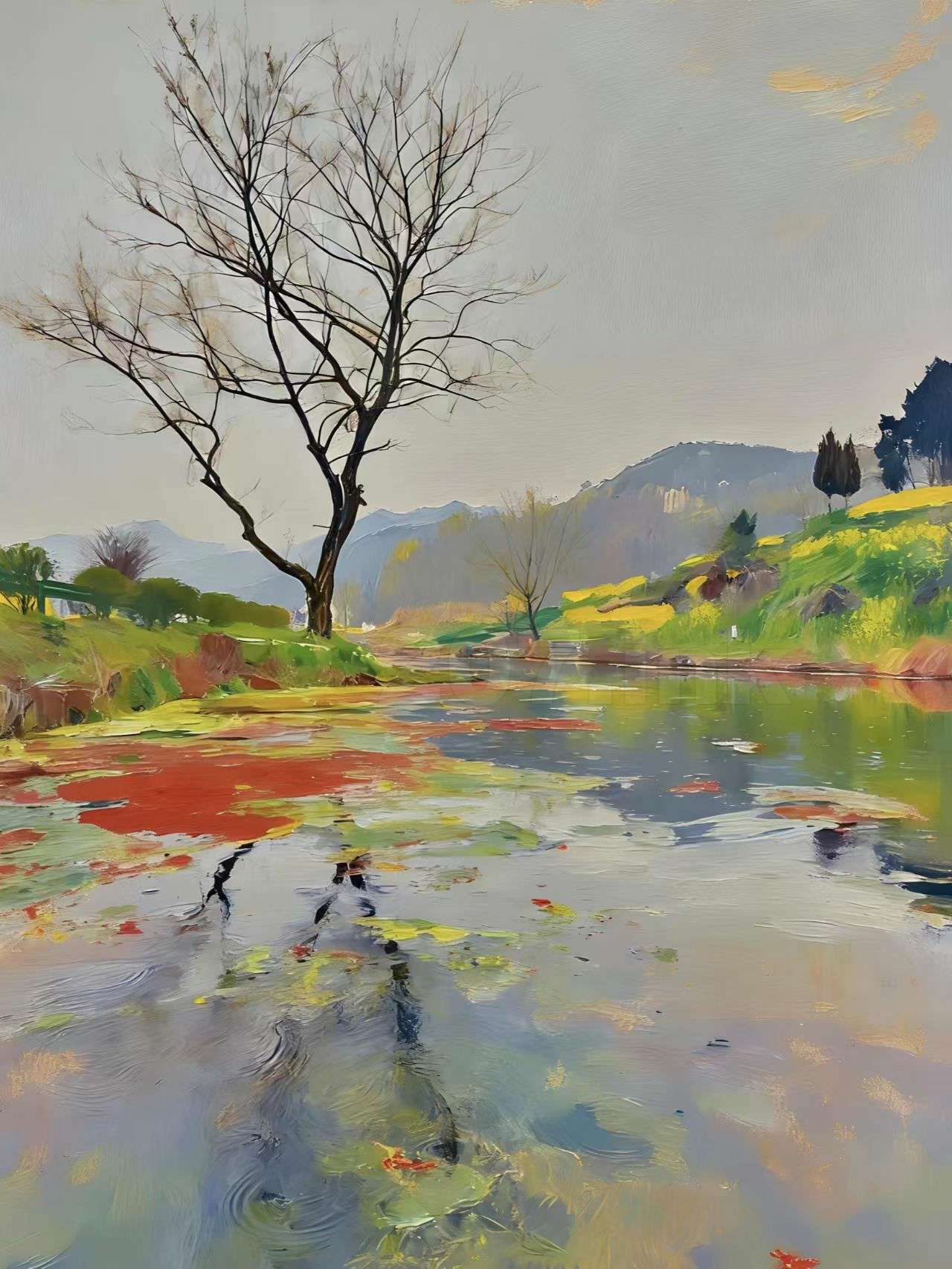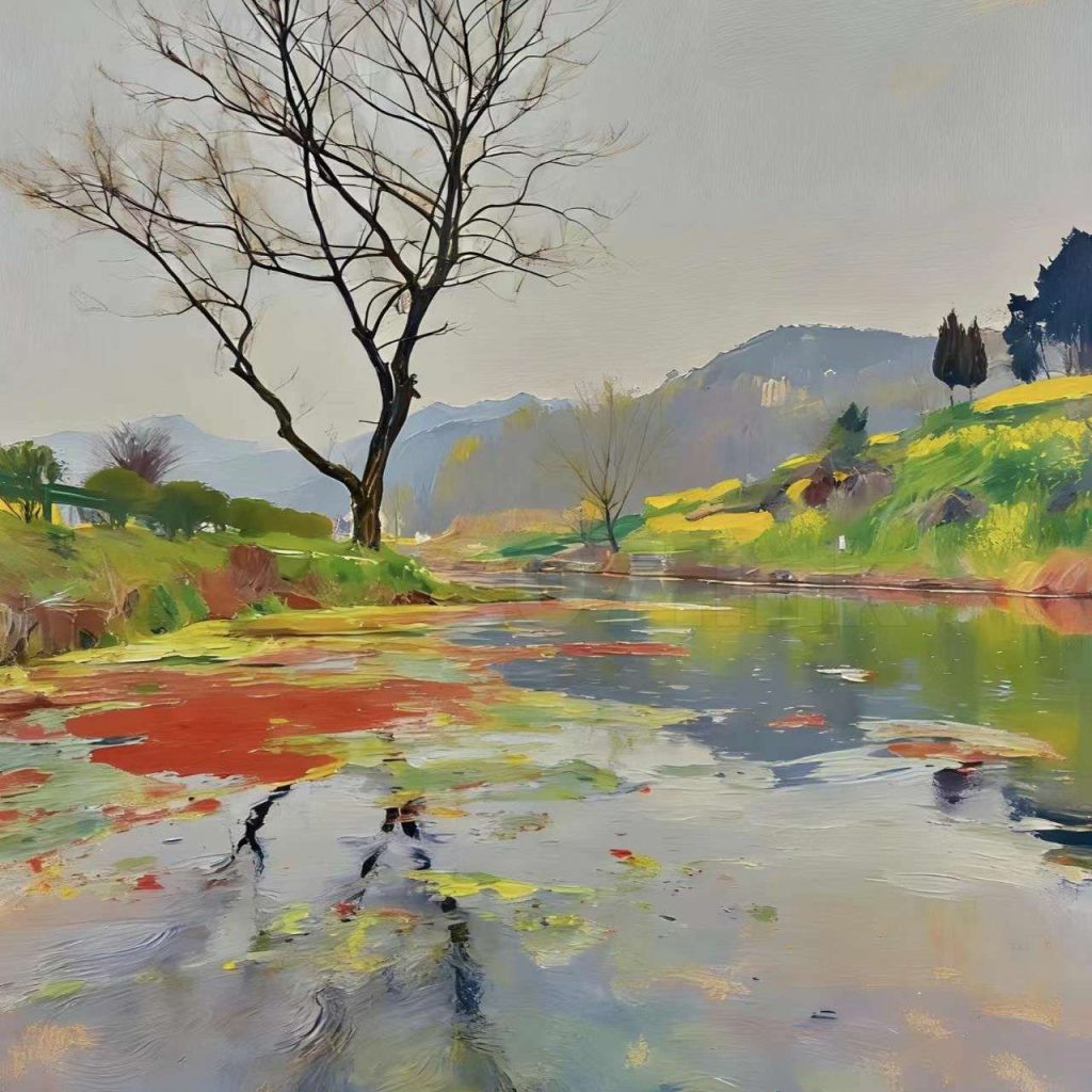 颜料在亚麻布上学会了用肿胀的笔触吞咽所有无用的深邃。