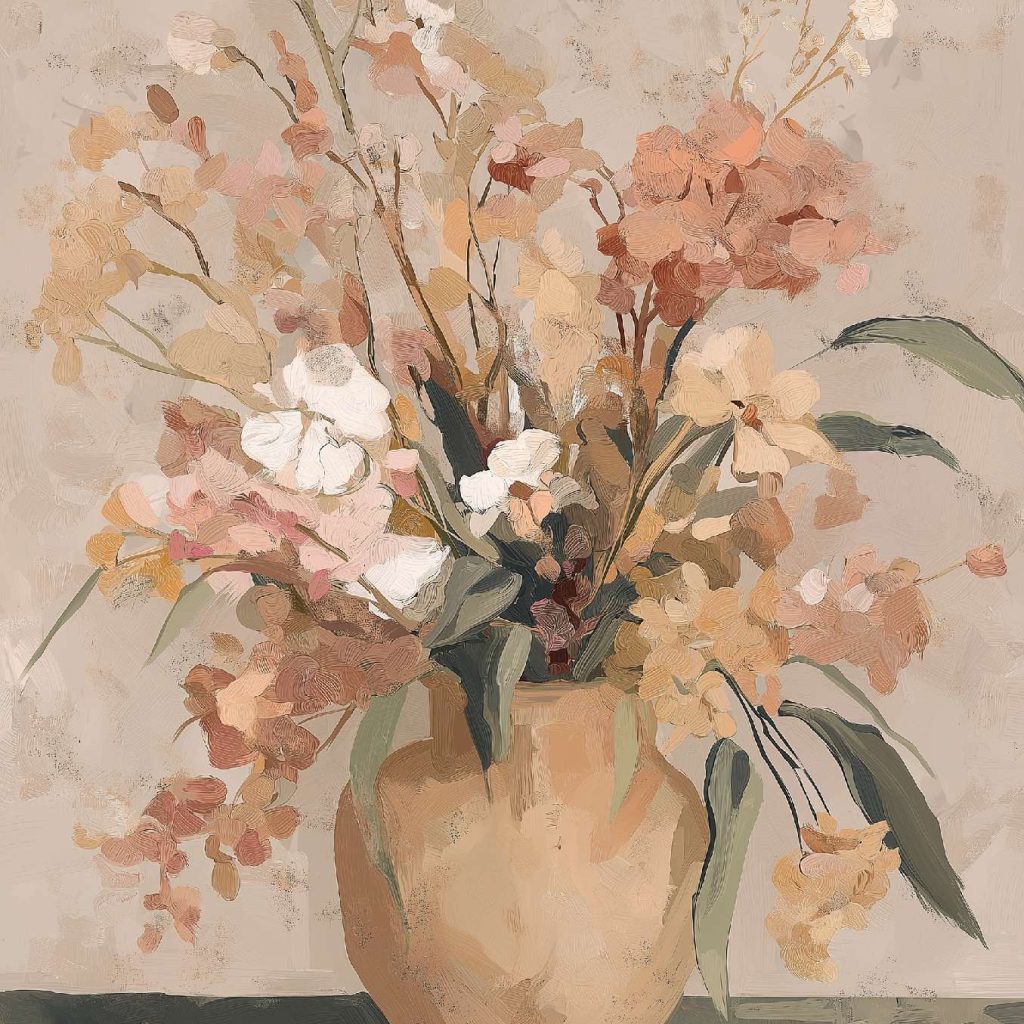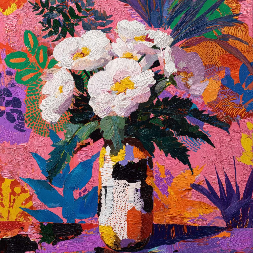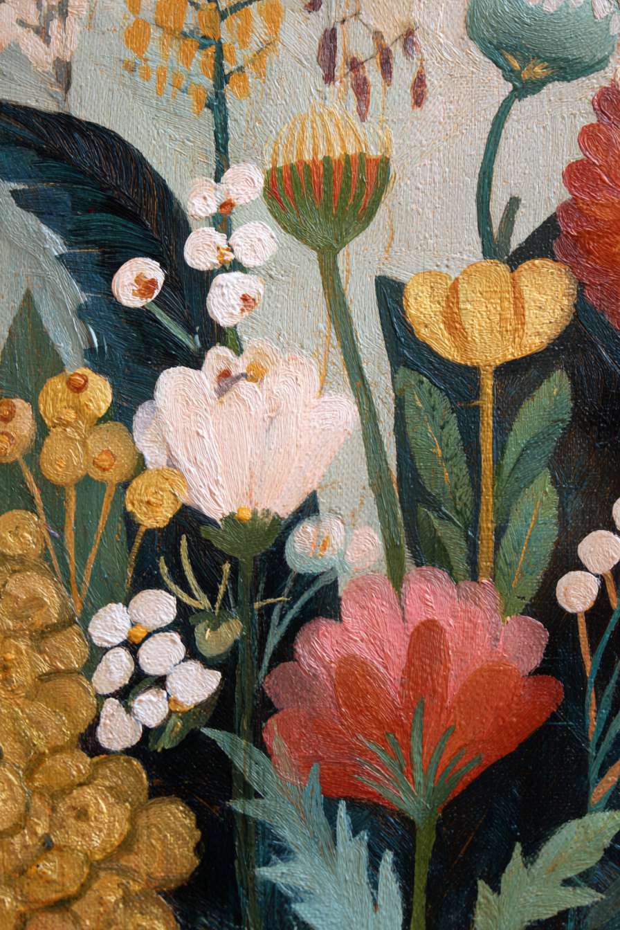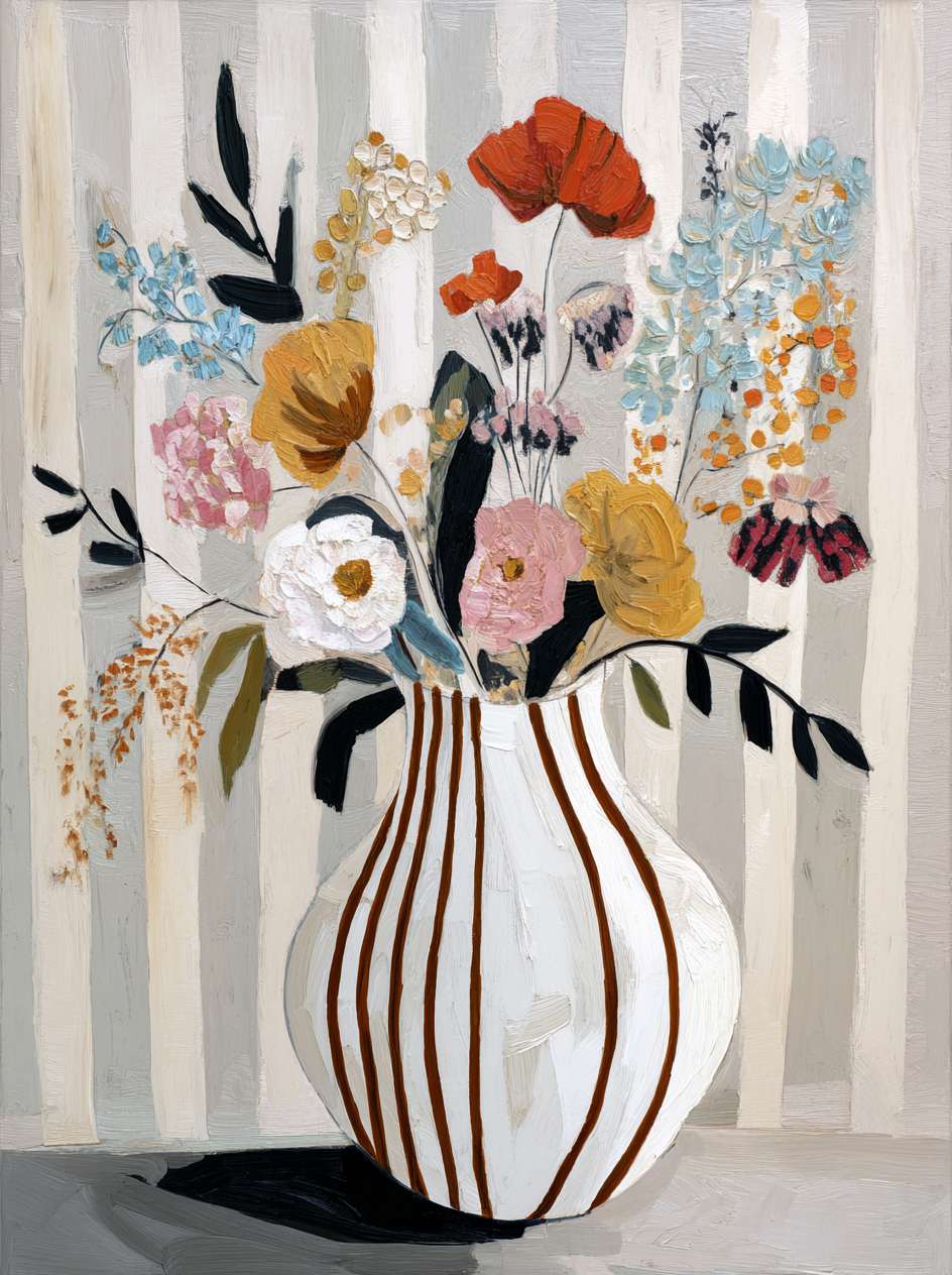 稚拙派油画《笨拙的告白》 2026年4月17日 作者:weeder 杏色的沉默已够久了,那朵灰白的花偏过头去,假装花瓶底部的弧线不是一场笨拙的告白——毕竟在这个要求一切光滑的世界上,连笔触都在替我说:我偏要这样粗粝地爱你。 上一篇野兽派油画《橘色午后》 发表回复 取消回复您的邮箱地址不会被公开。 必填项已用 * 标注评论 * 显示名称 * 邮箱 * 网站 在此浏览器中保存我的显示名称、邮箱地址和网站地址,以便下次评论时使用。