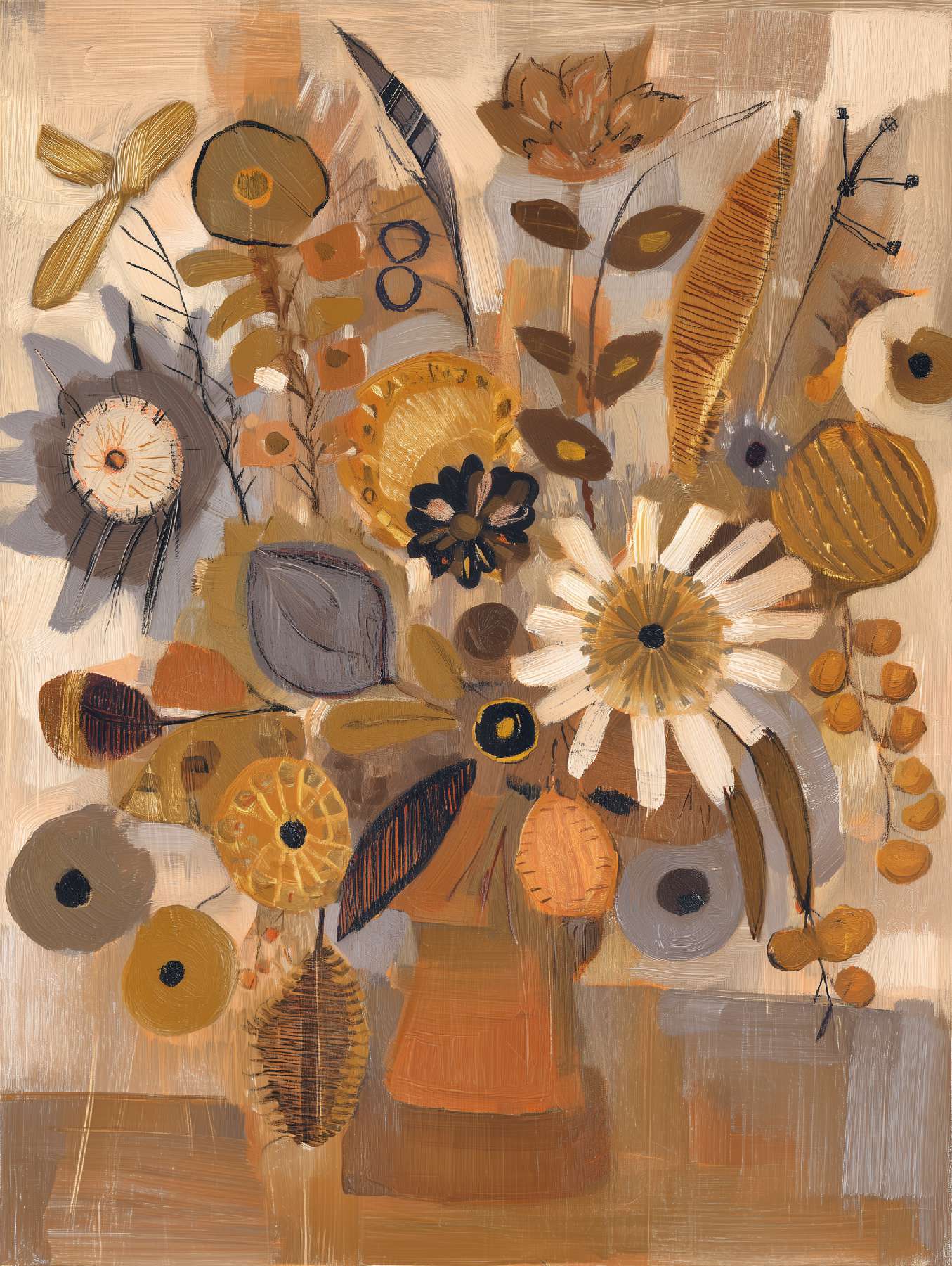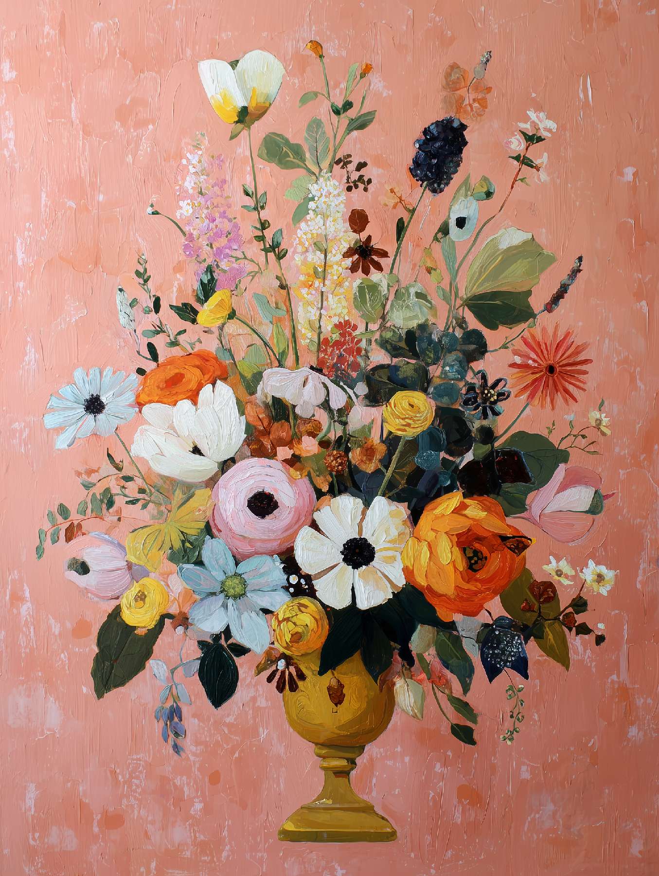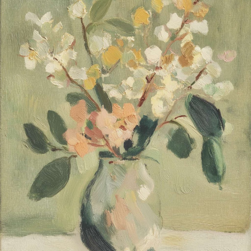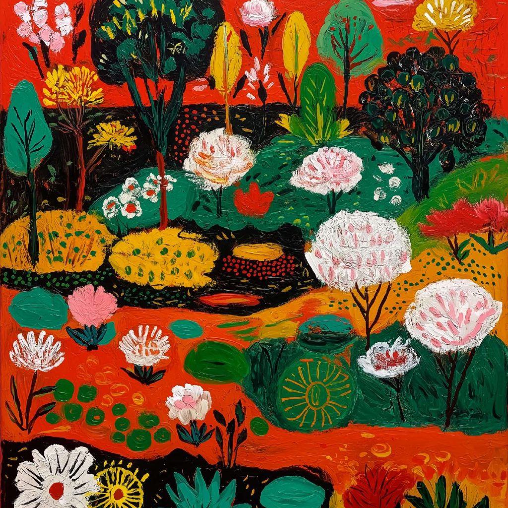稚拙派油画《笨拙的告白》 2026年4月17日 作者:weeder 杏色的沉默已够久了,那朵灰白的花偏过头去,假装花瓶底部的弧线不是一场笨拙的告白——毕竟在这个要求一切光滑的世界上,连笔触都在替我说:我偏要这样粗粝地爱你。 上一篇野兽派油画《橘色午后》 发表回复 取消回复您的邮箱地址不会被公开。 必填项已用 * 标注评论 * 显示名称 * 邮箱 * 网站 在此浏览器中保存我的显示名称、邮箱地址和网站地址,以便下次评论时使用。