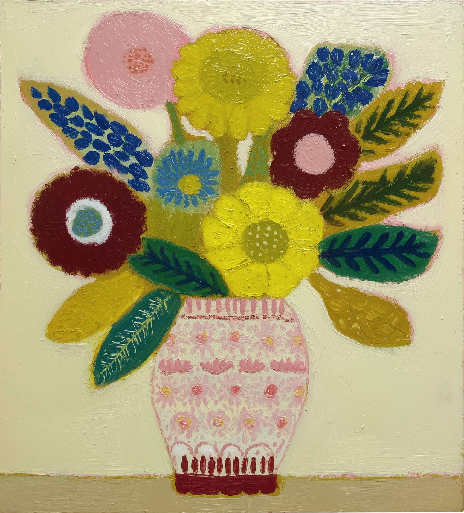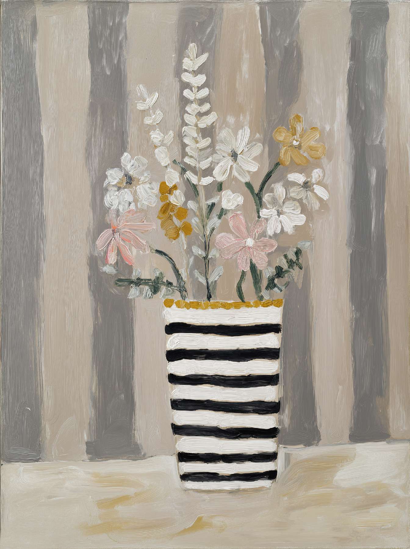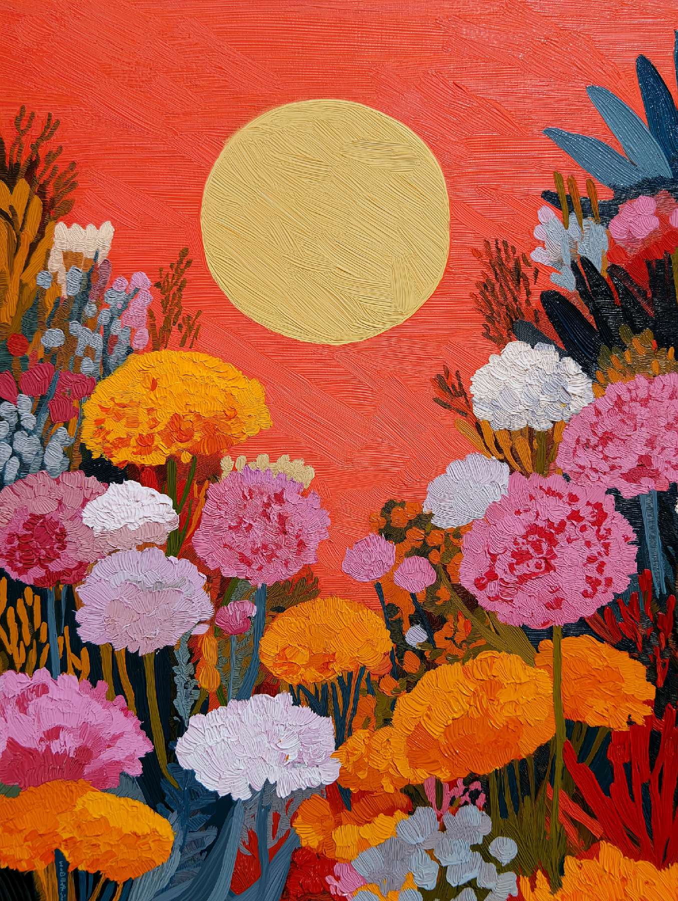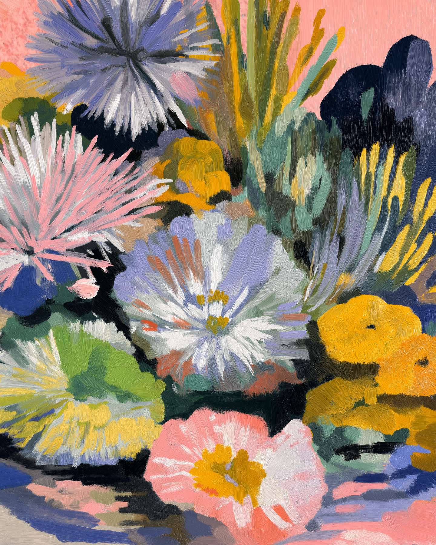 稚拙派油画《笨拙的告白》 2026年4月17日 作者:weeder 杏色的沉默已够久了,那朵灰白的花偏过头去,假装花瓶底部的弧线不是一场笨拙的告白——毕竟在这个要求一切光滑的世界上,连笔触都在替我说:我偏要这样粗粝地爱你。 上一篇野兽派油画《橘色午后》 发表回复 取消回复您的邮箱地址不会被公开。 必填项已用 * 标注评论 * 显示名称 * 邮箱 * 网站 在此浏览器中保存我的显示名称、邮箱地址和网站地址,以便下次评论时使用。