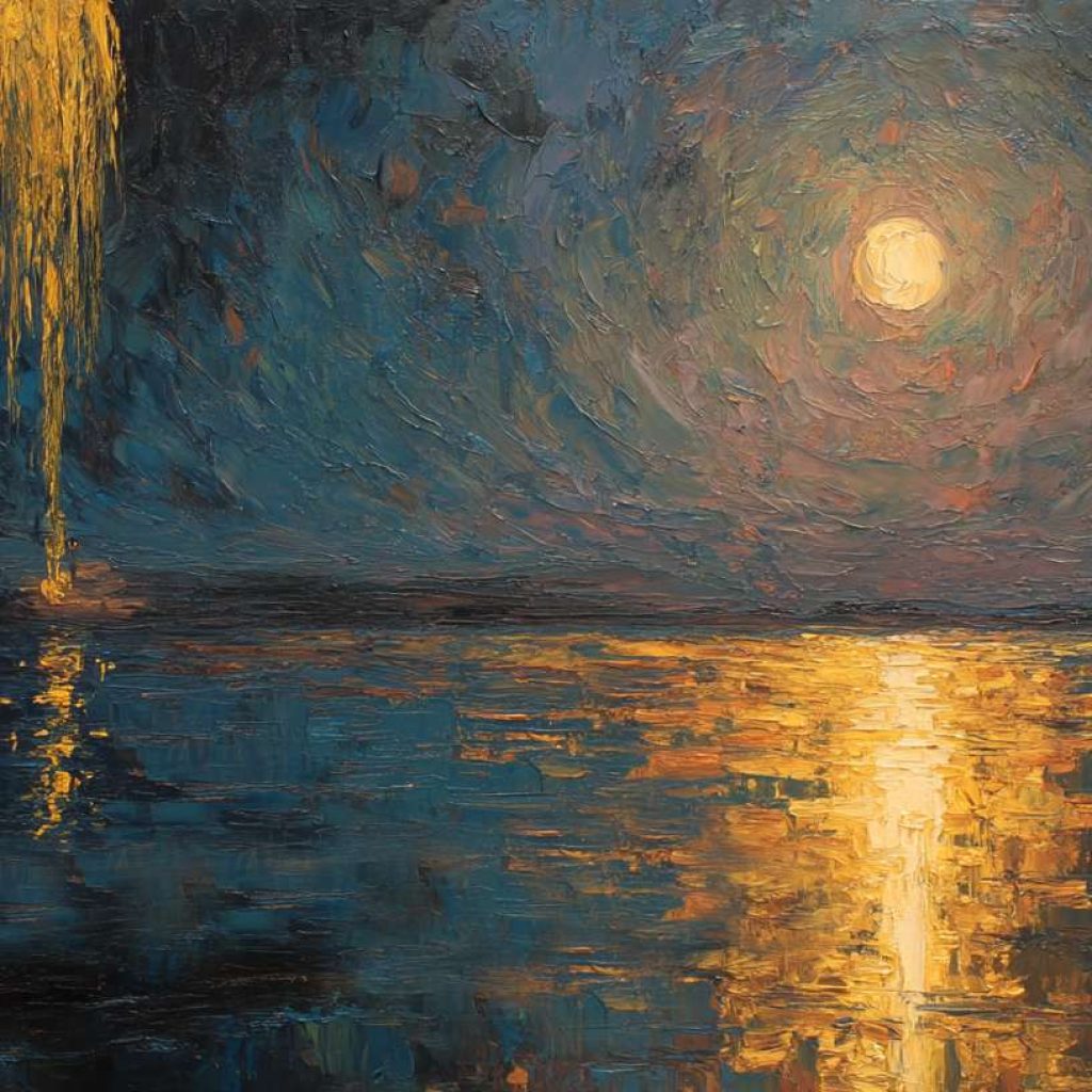 浪漫主义油画《寂泊》 2026年4月21日 作者:weeder 月光把空船拴在芦苇根上,那只鸭子假装赶路,水面却偷偷打了个哈欠。 上一篇抽象印象派油画《泊光》 发表回复 取消回复您的邮箱地址不会被公开。 必填项已用 * 标注评论 * 显示名称 * 邮箱 * 网站 在此浏览器中保存我的显示名称、邮箱地址和网站地址,以便下次评论时使用。