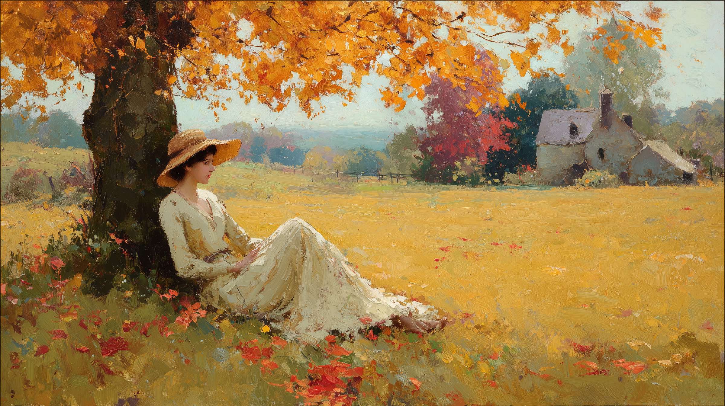 印象派复古油画《此间呼吸》